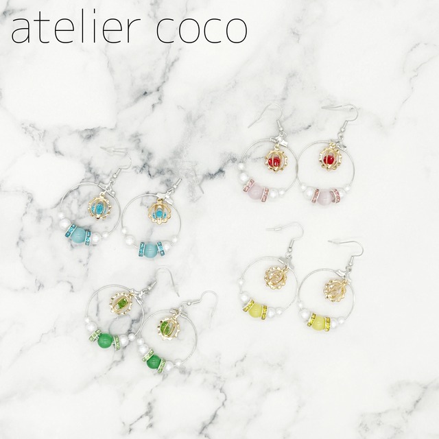 カルセドニー/フェイクパール サークル フックピアス 各4色