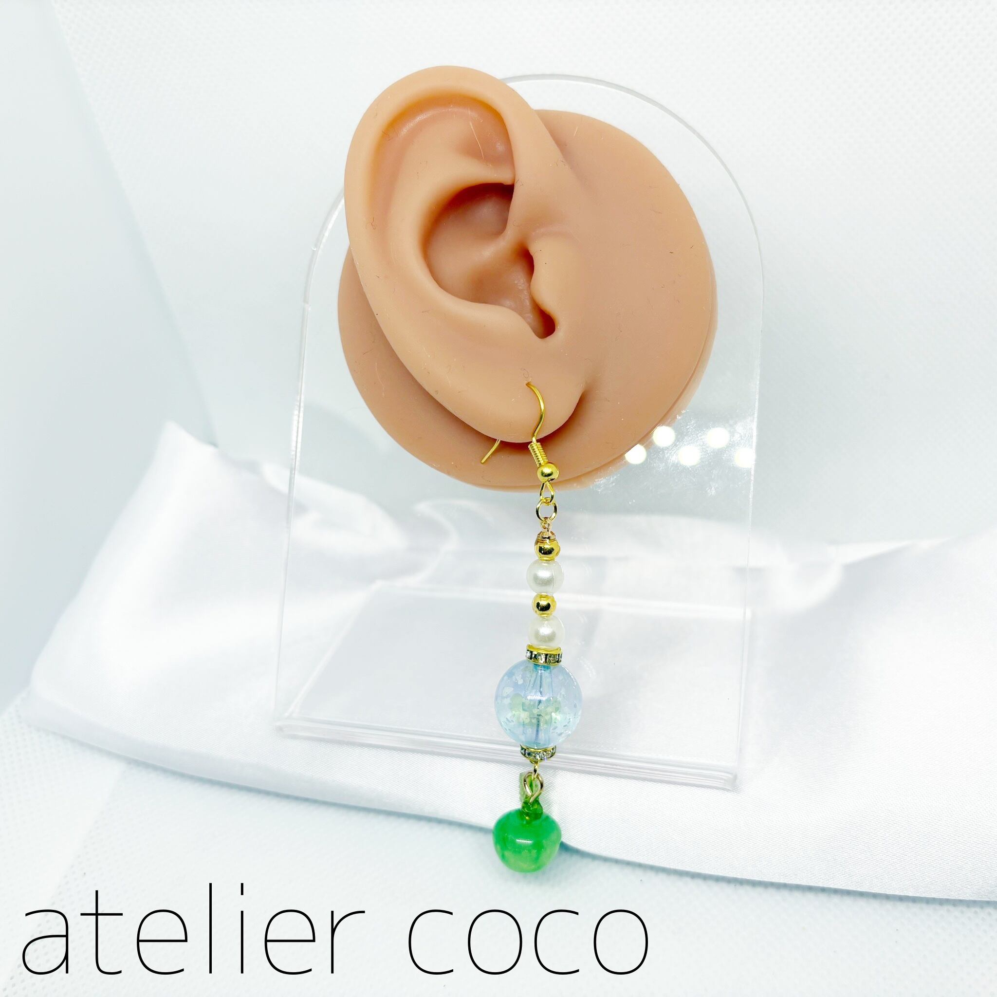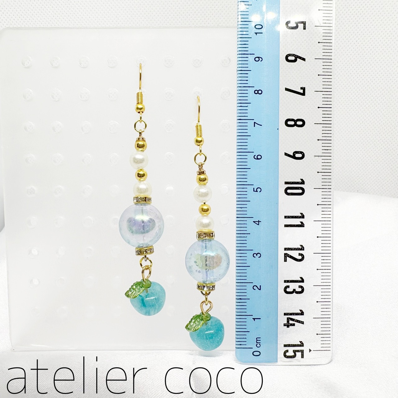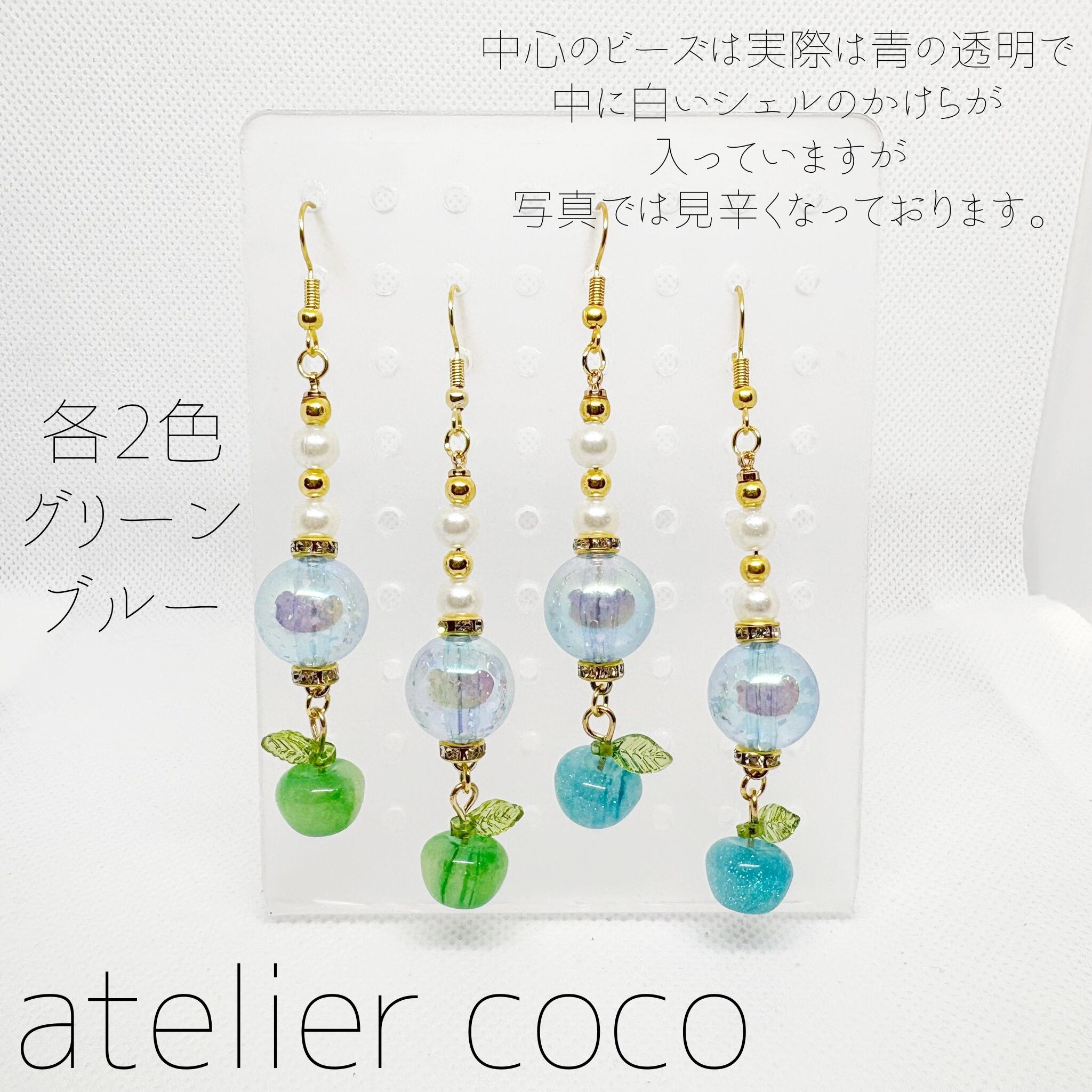大きなビーズとりんごのモチーフがかわいいピアスです。