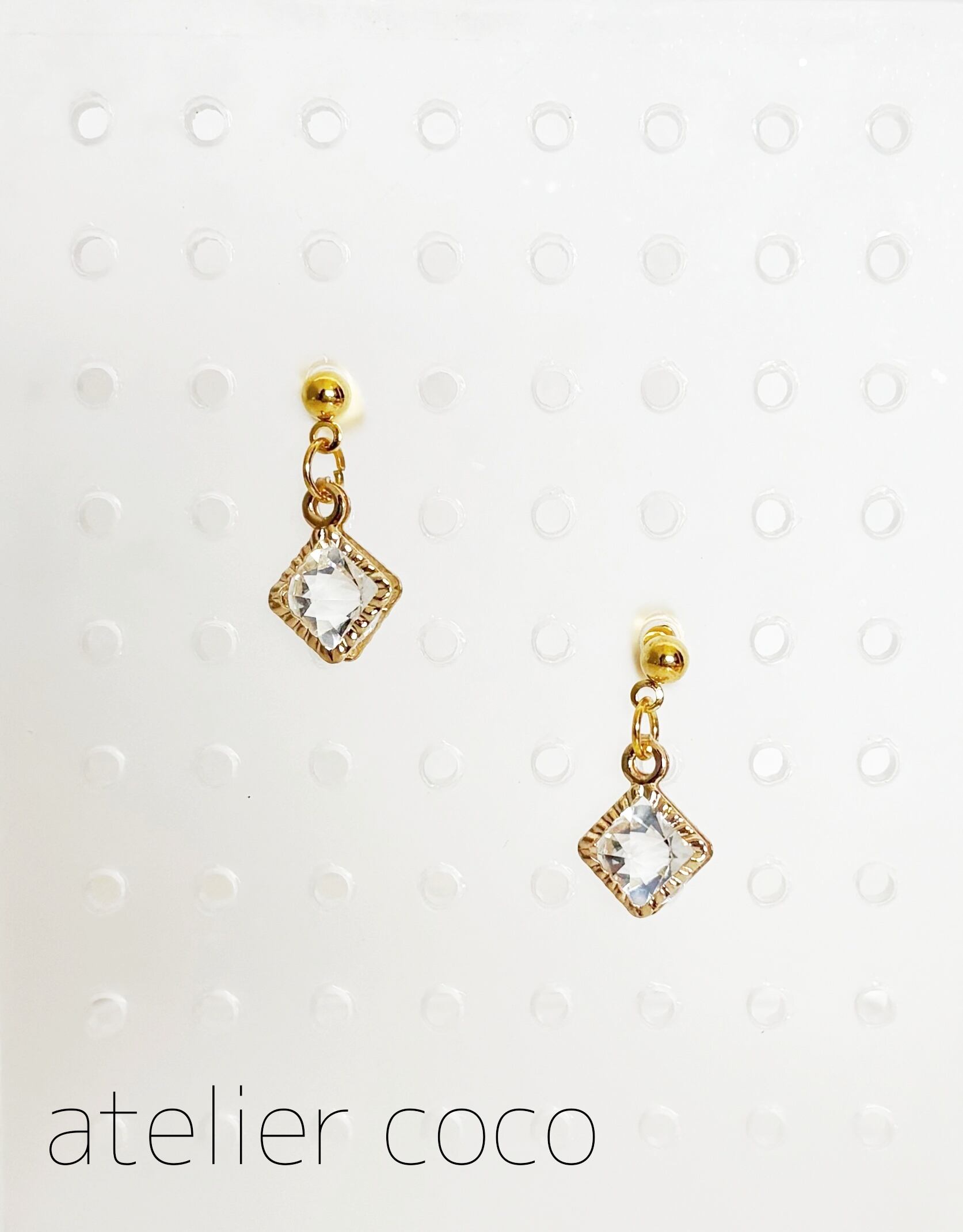 こちらの作品はキュービックジルコニアのひし形ラインストーンをピアスにしました。