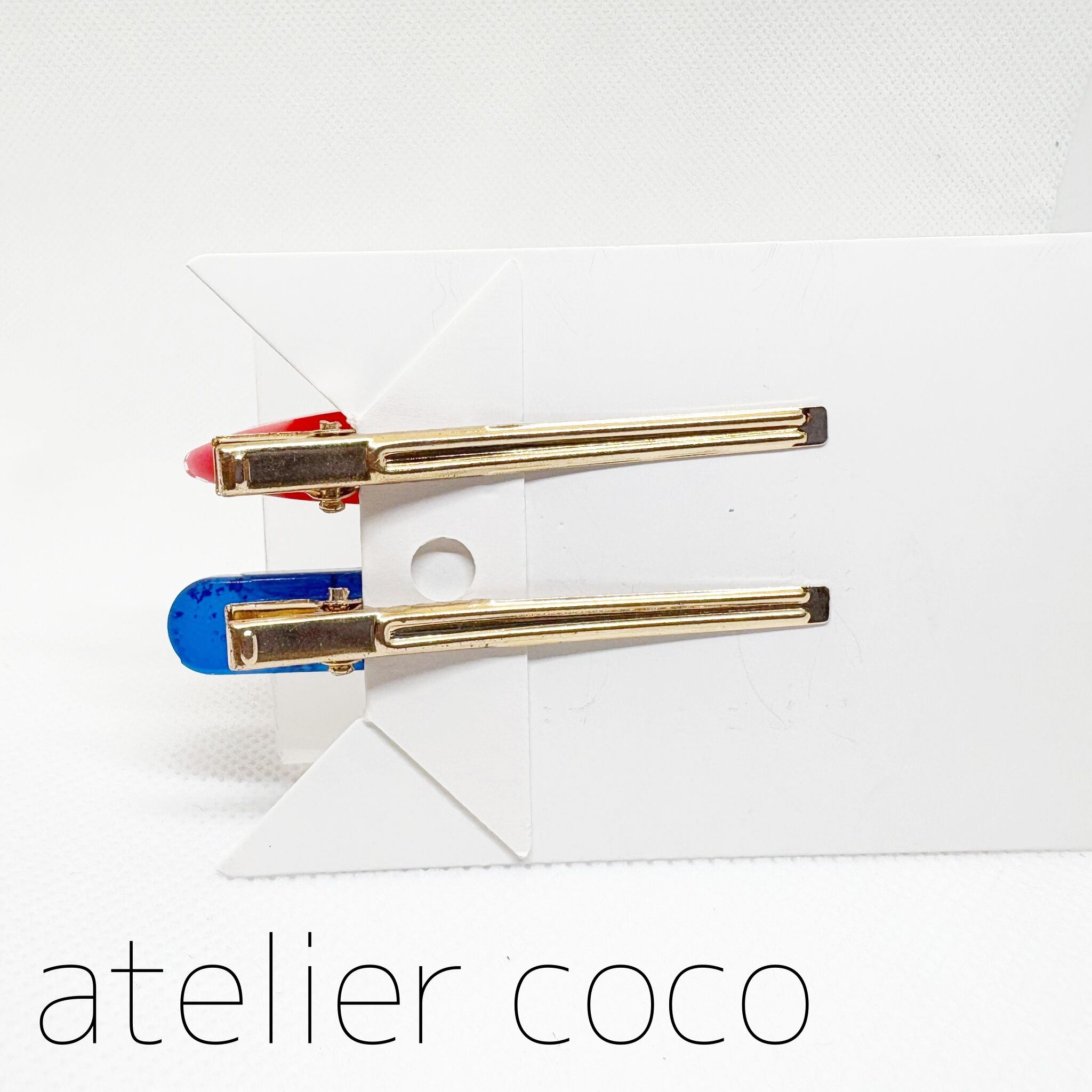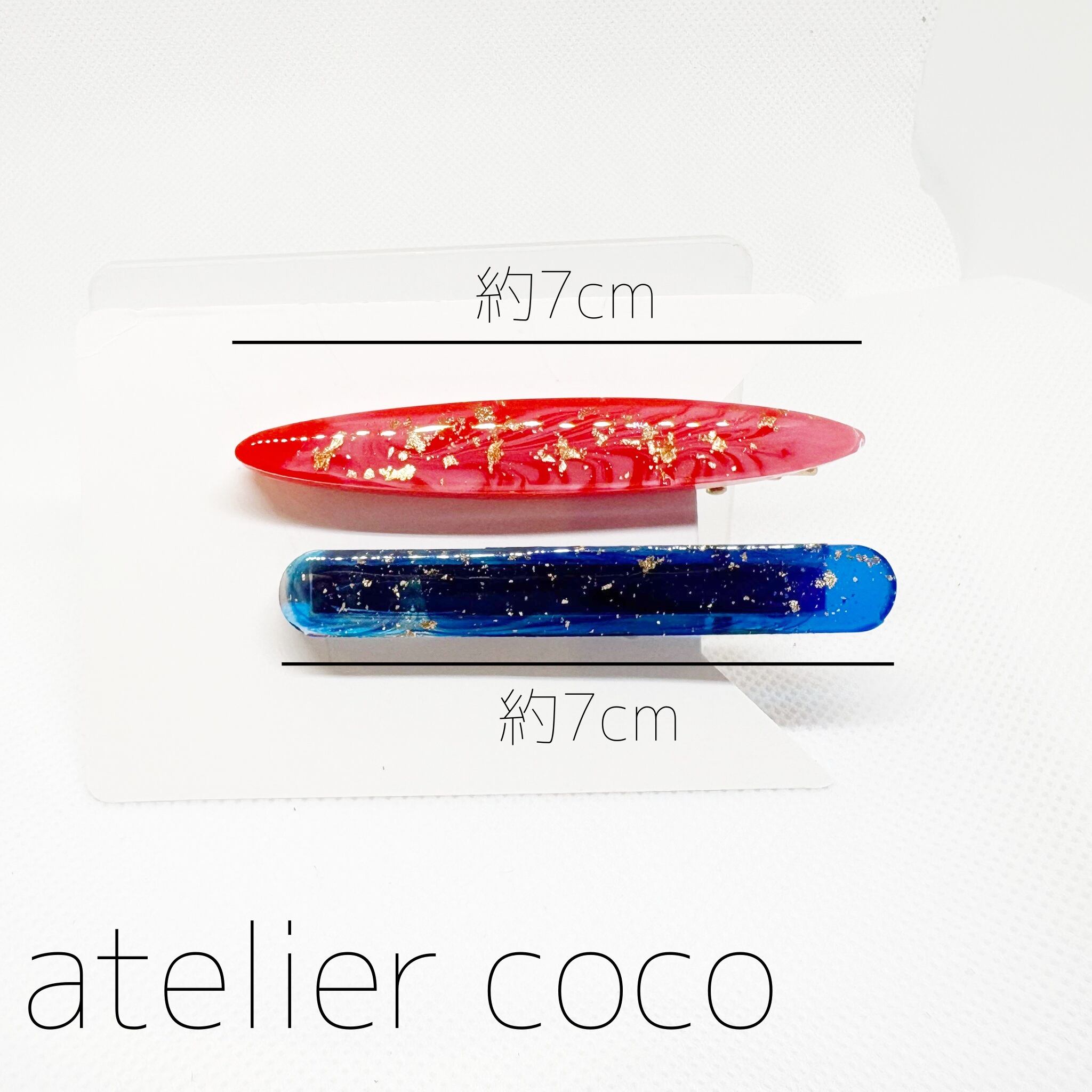 ◎SALE◎金箔 ヘアクリップ 2本セット 横7cm/縦1cm ブルー/ピンク