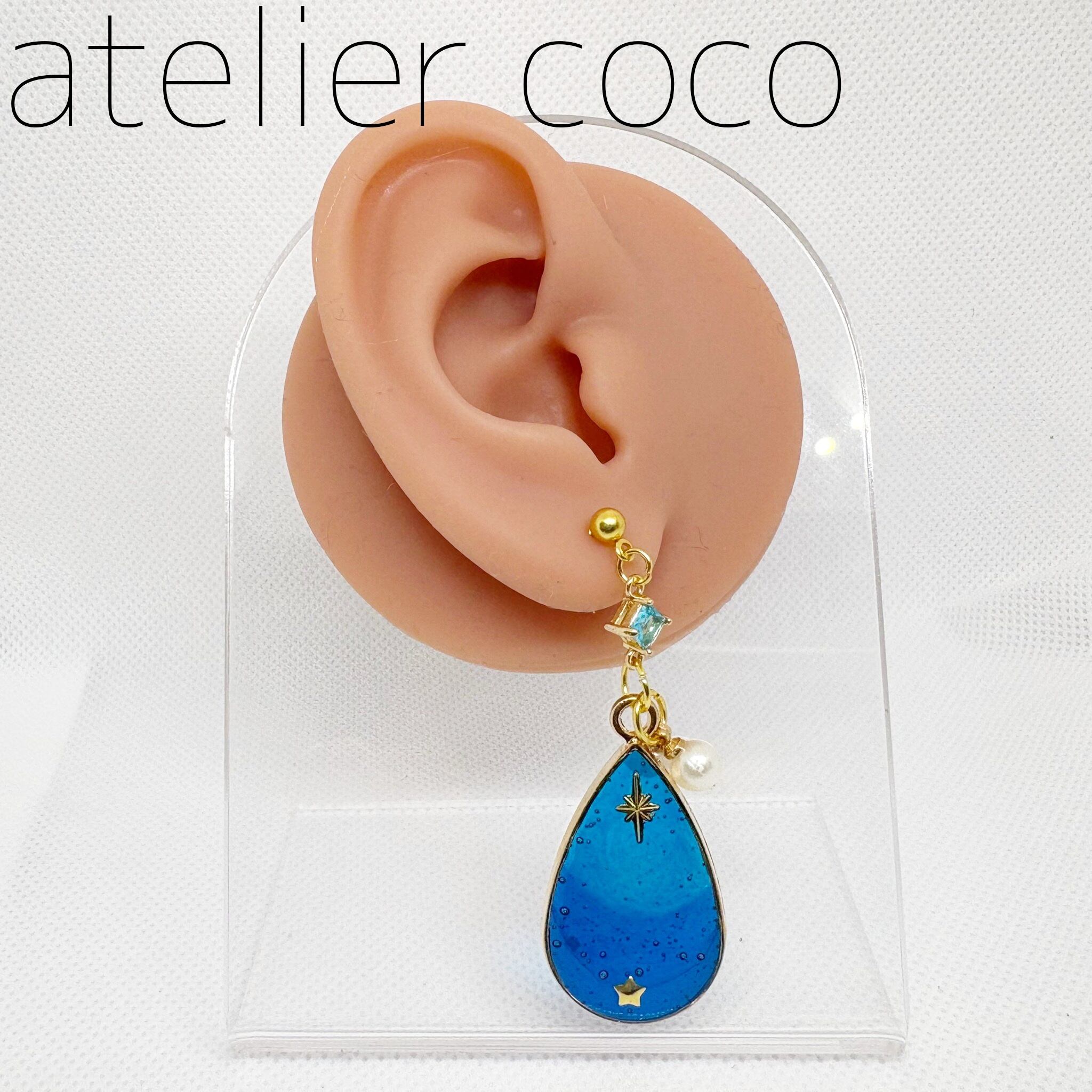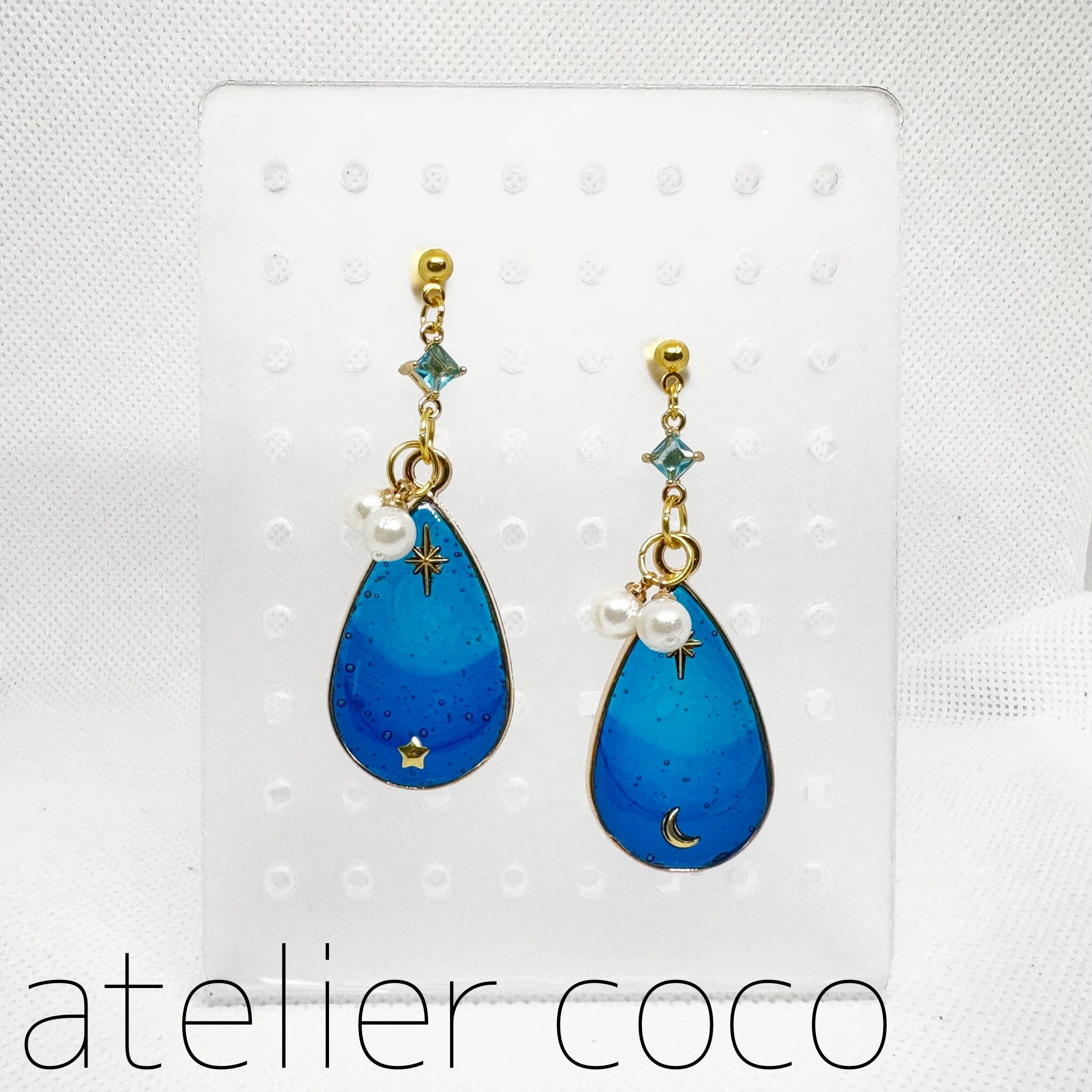◎SALE◎しずく型 スタッドピアス 月 星 ブルー