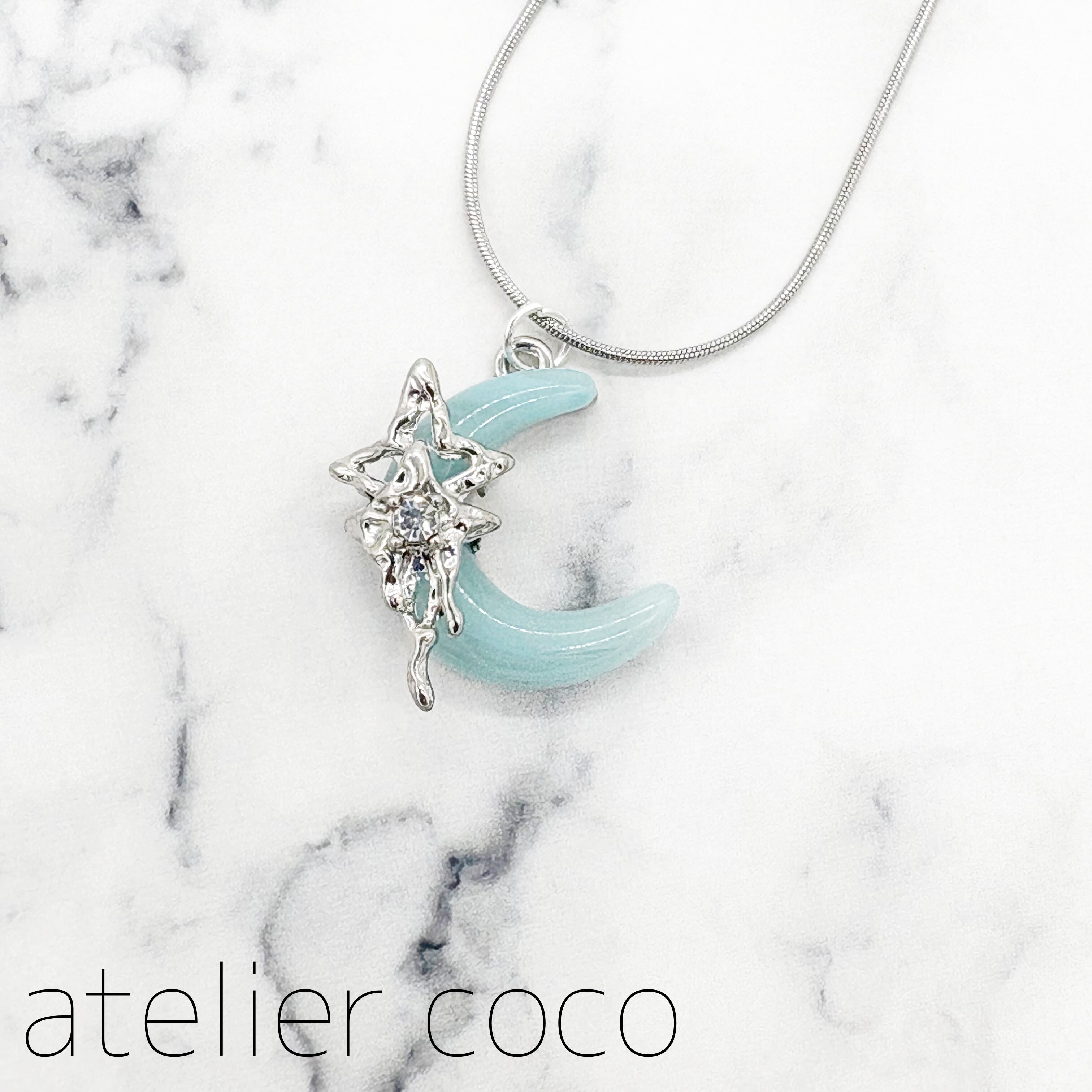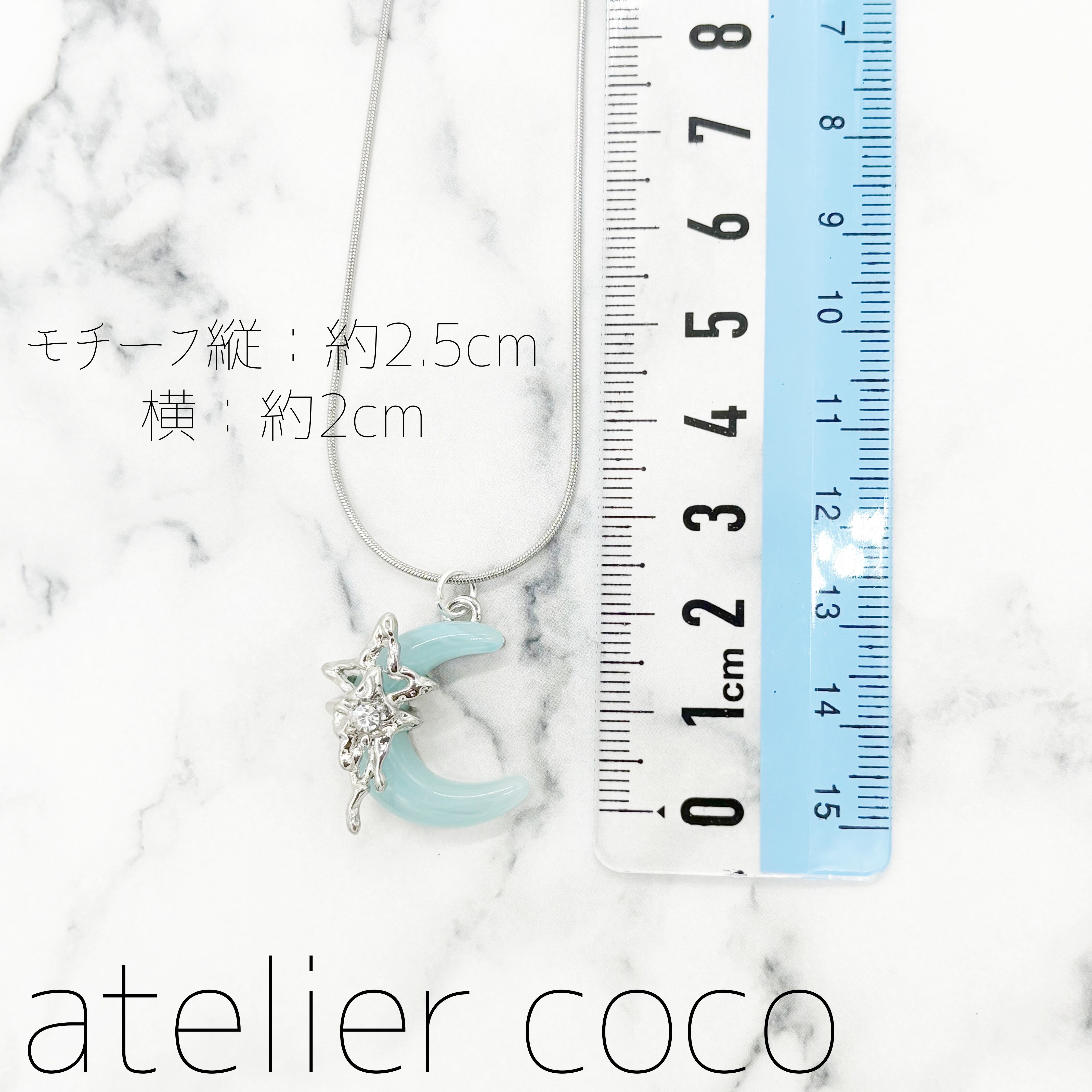 三日月のモチーフが存在感を放つ可愛らしいネックレスです。