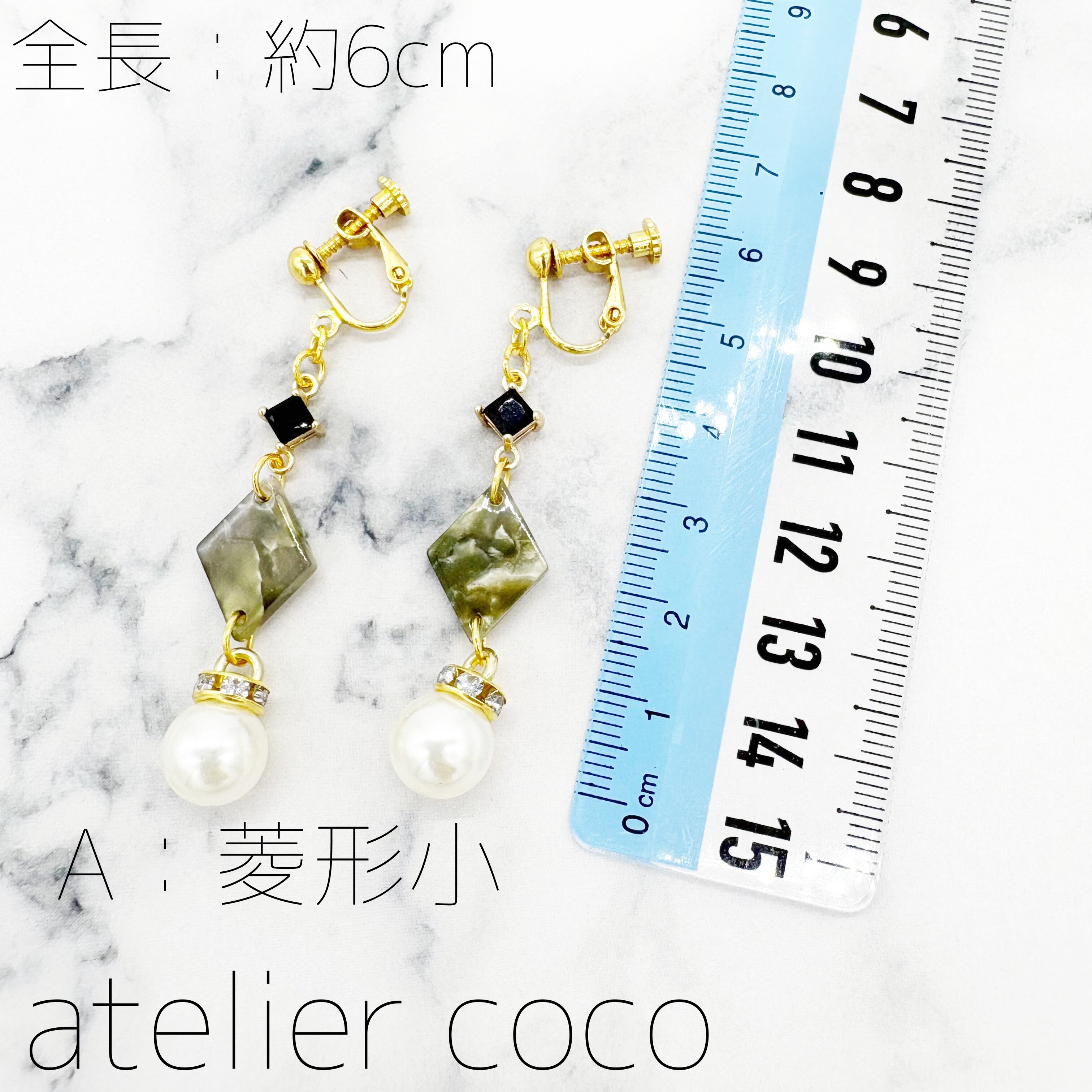 ◎SALE◎大理石風 菱形モチーフ イヤリング 各2種類