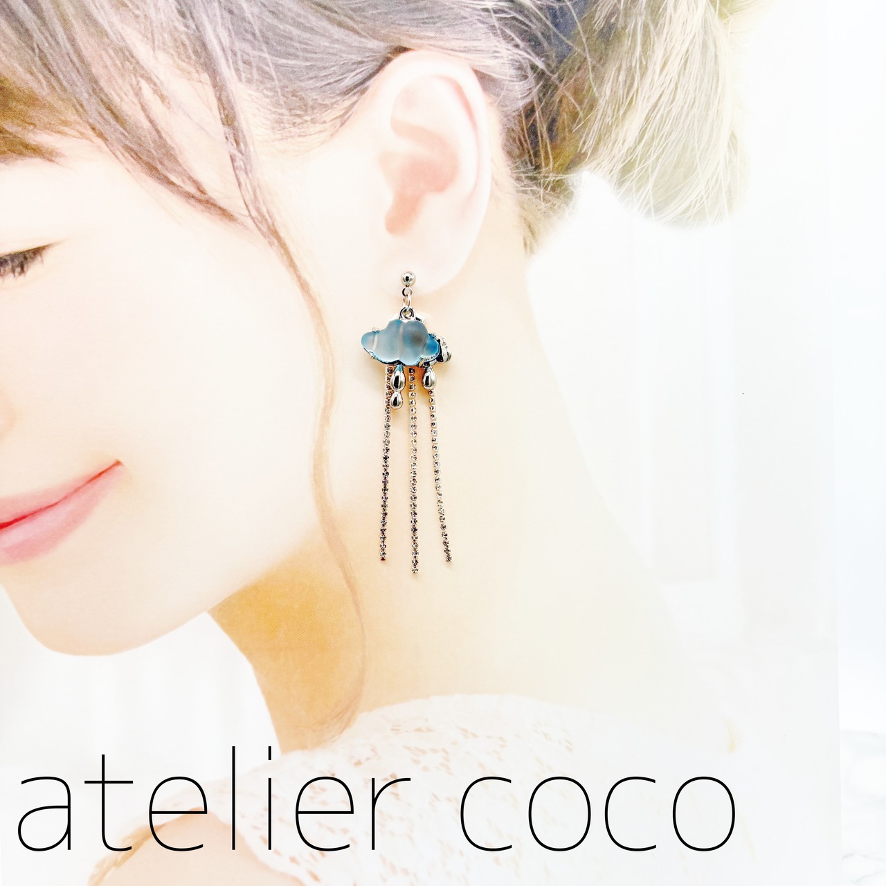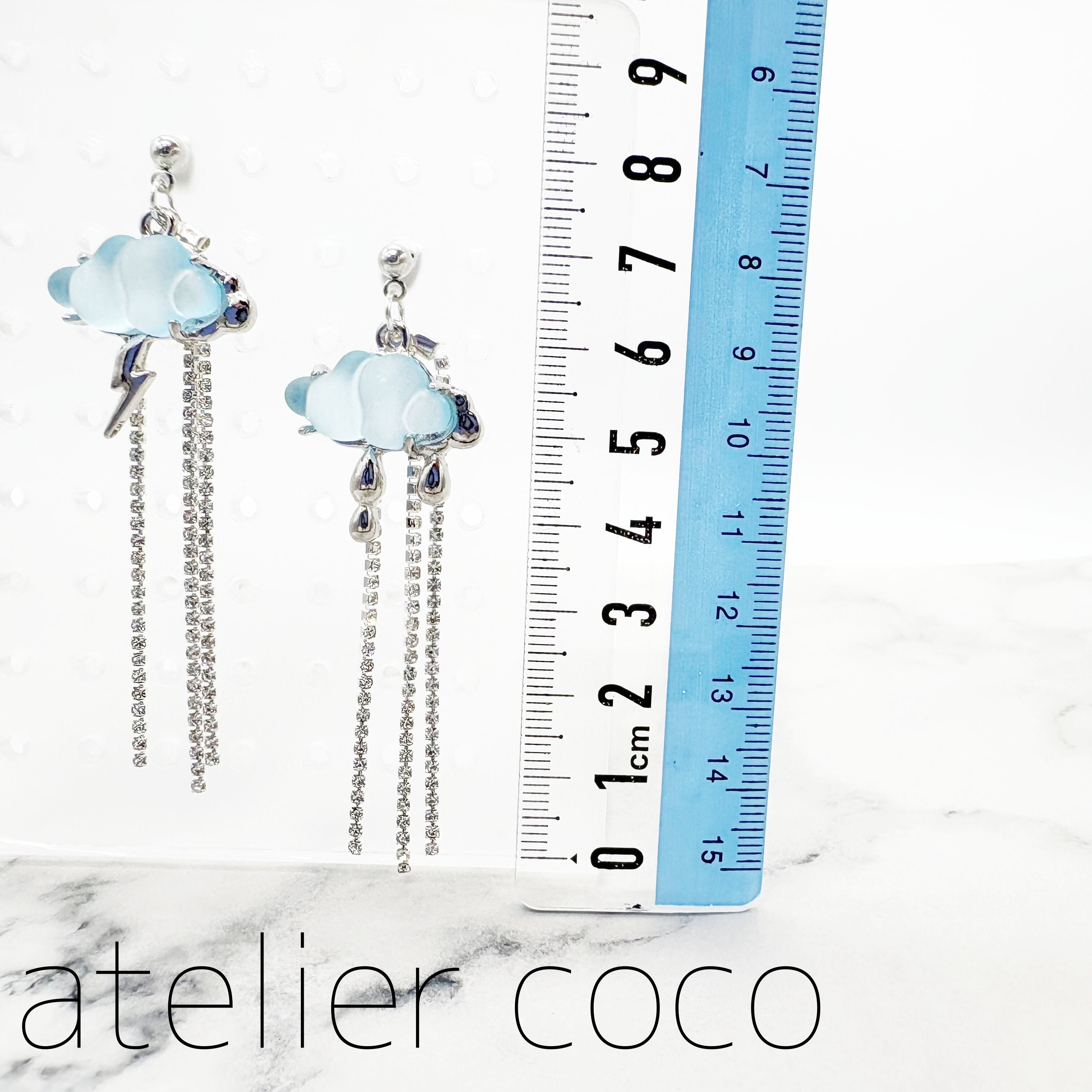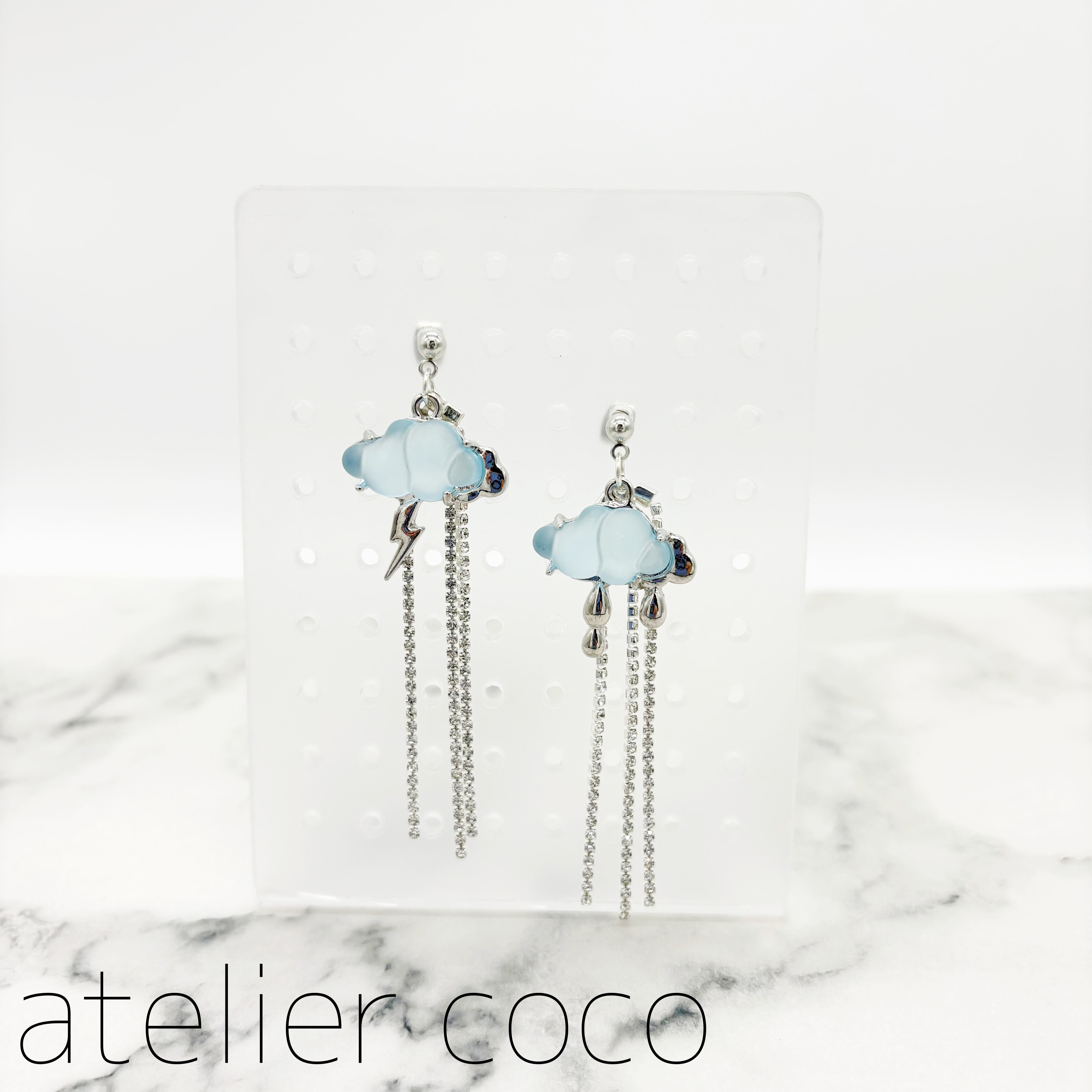 ◎SALE◎雲/ラインストーン ロング スタッドピアス(キャッチ式ピアス) ブルー