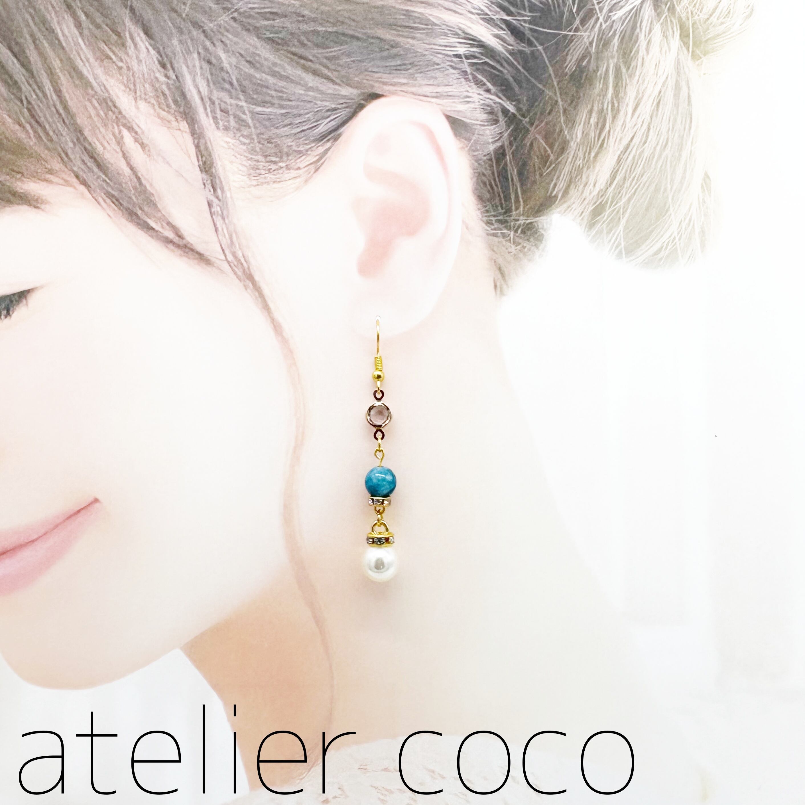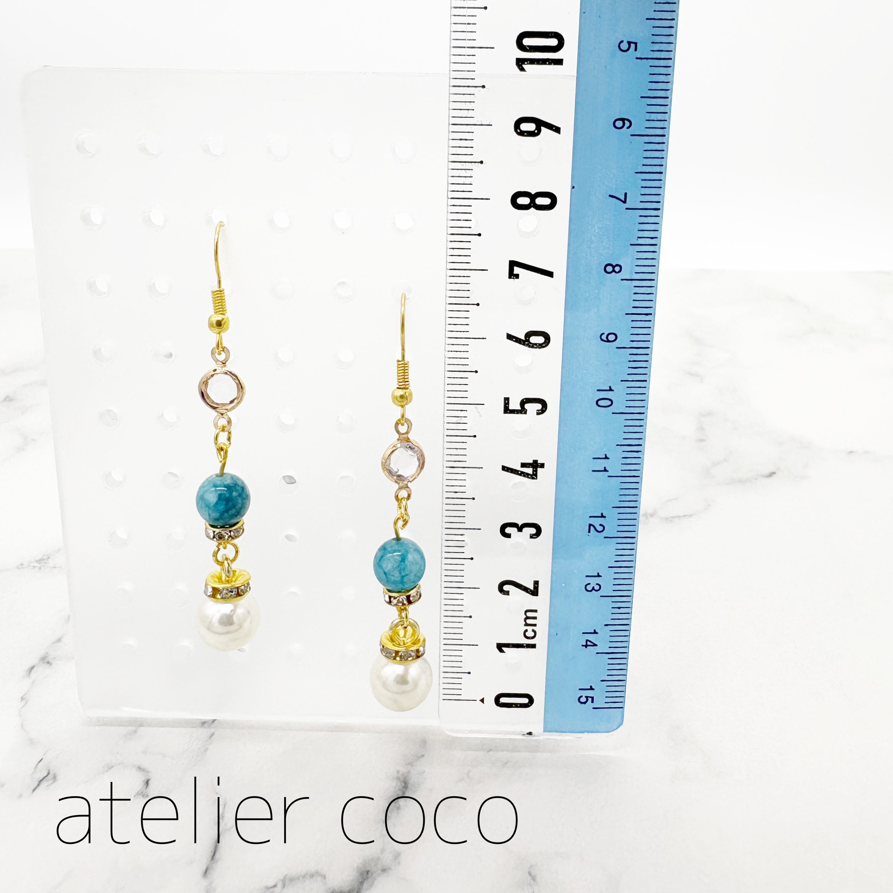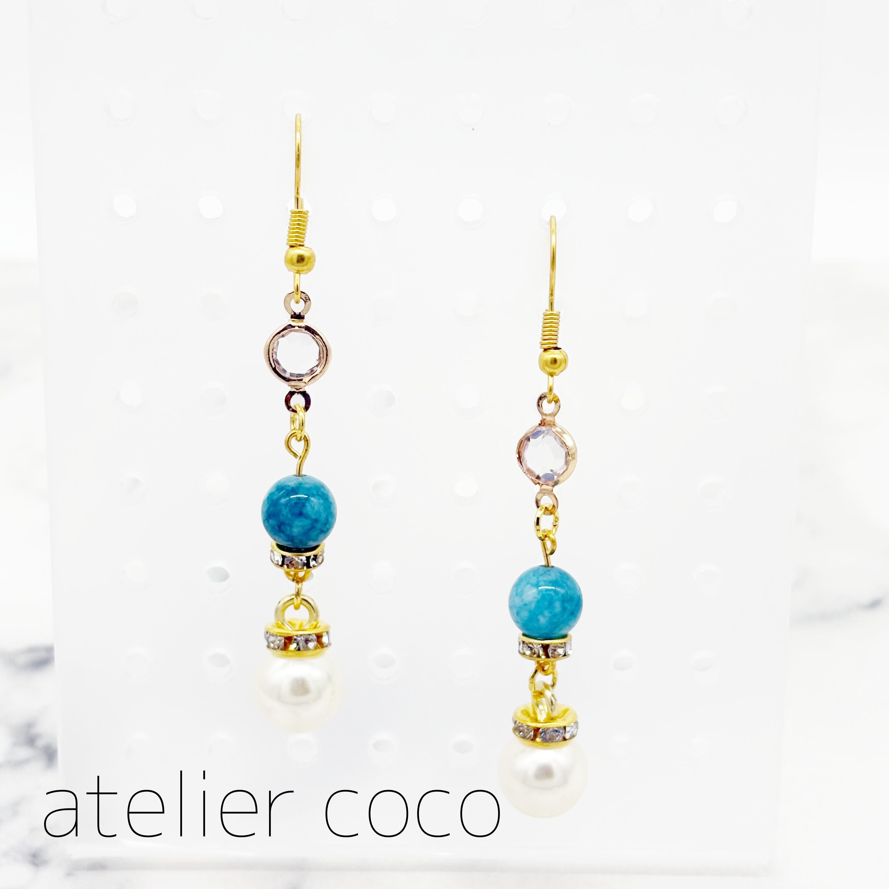 ラリマー/フェイクパール ロング フックピアス ブルー