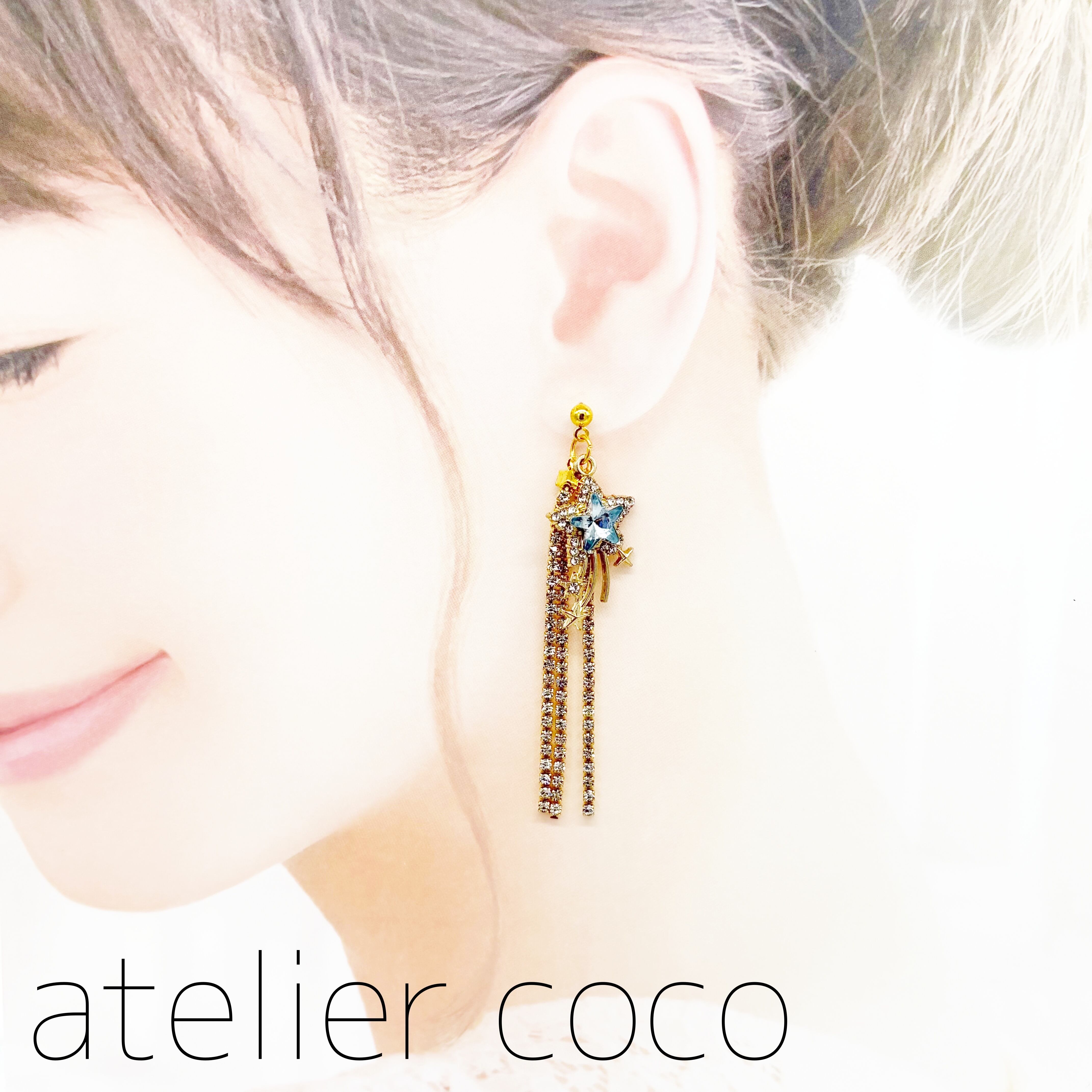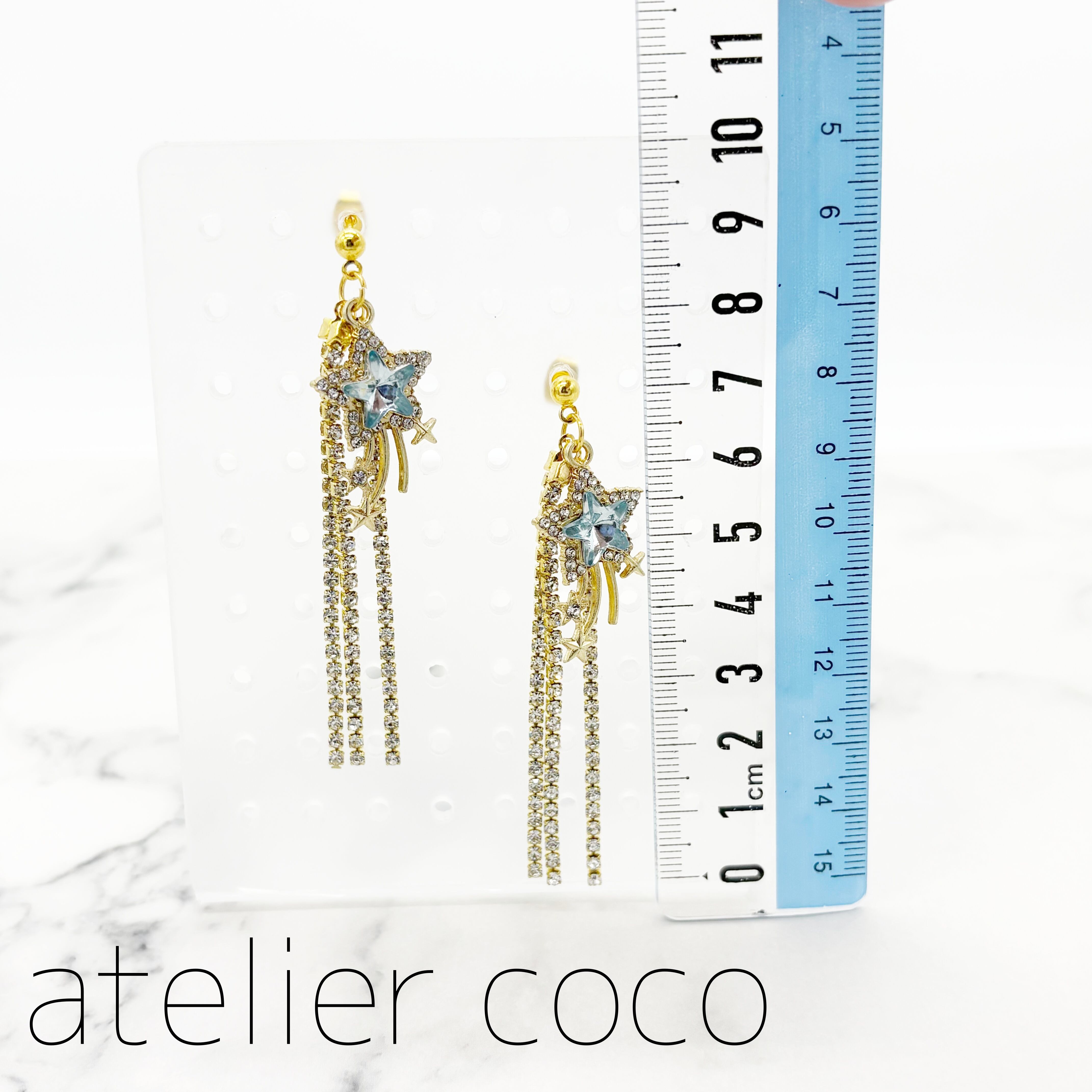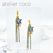 ◎SALE◎星ラインストーン ロング スタッドピアス(キャッチ式ピアス) ゴールド/ブルー