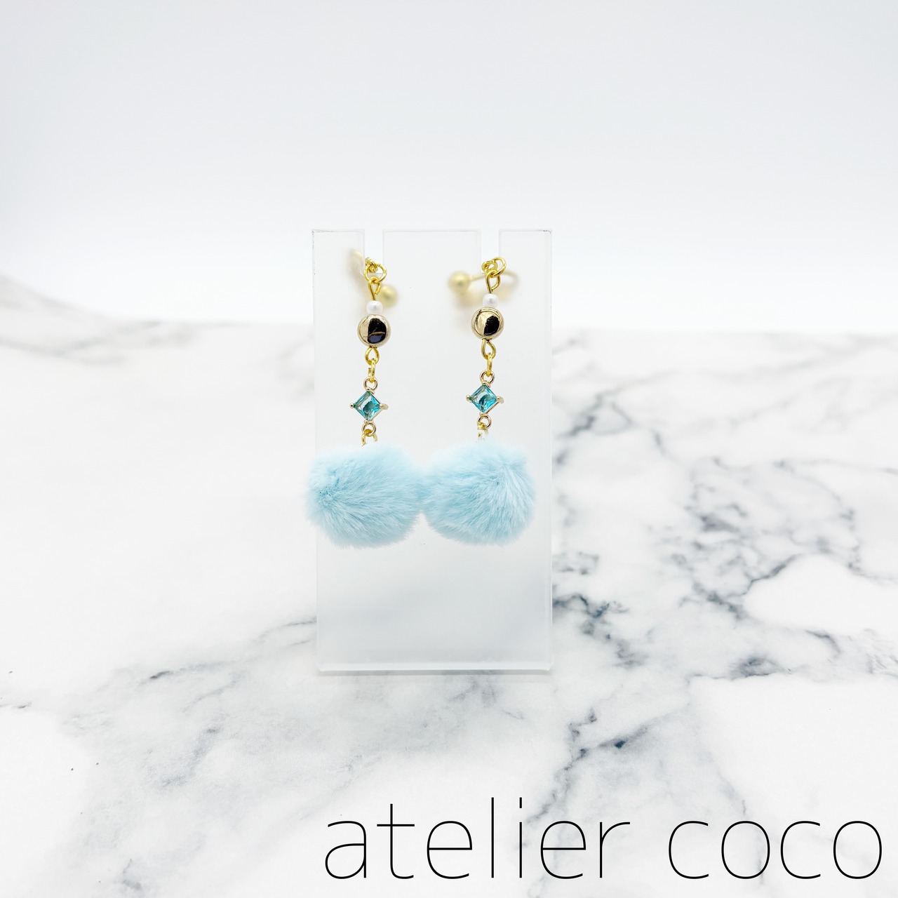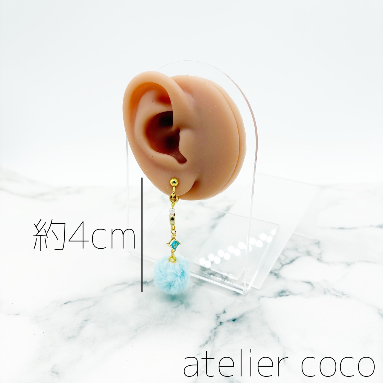 【サージカルステンレス】ぽんぽん ストーン イヤリング ブルー【2025年新作】