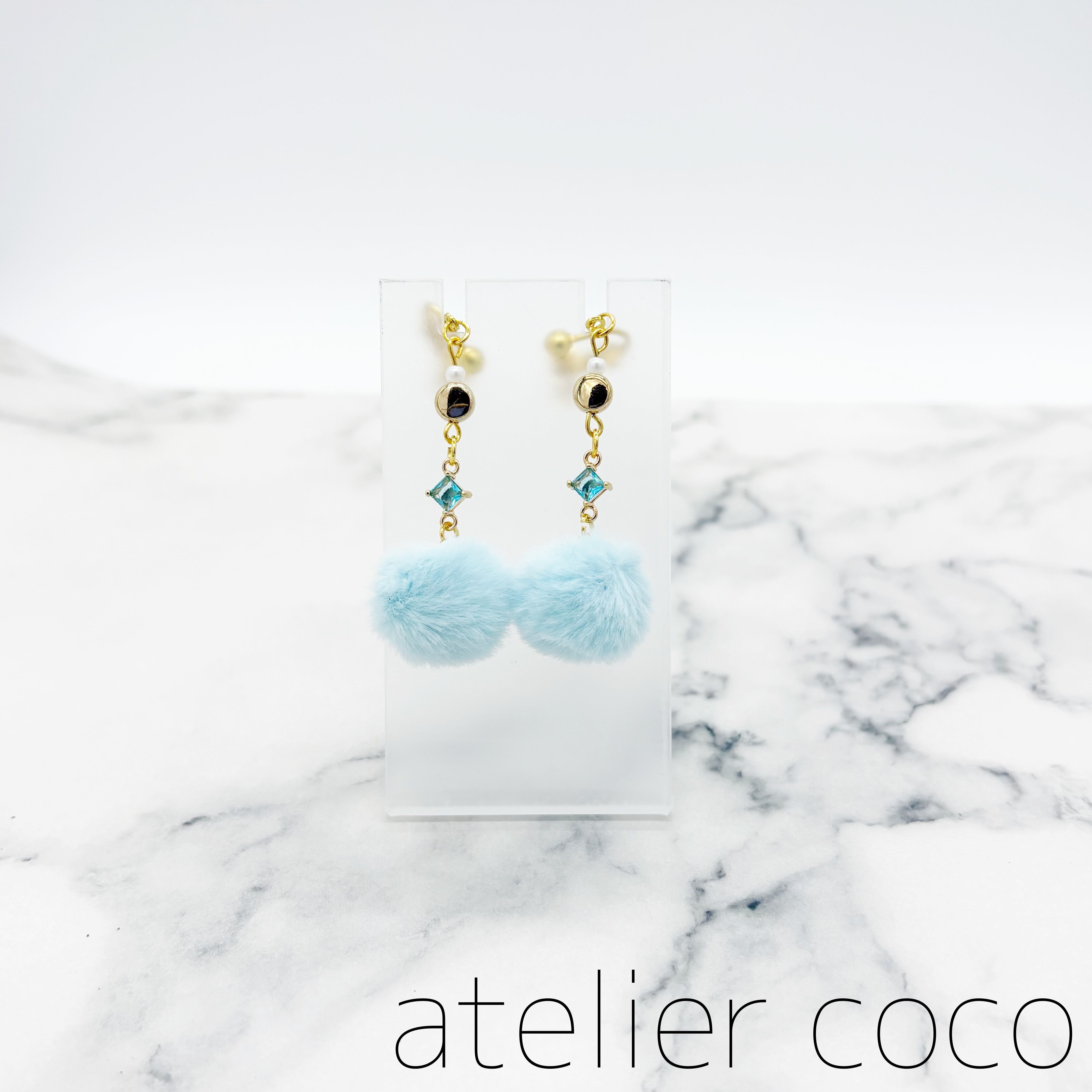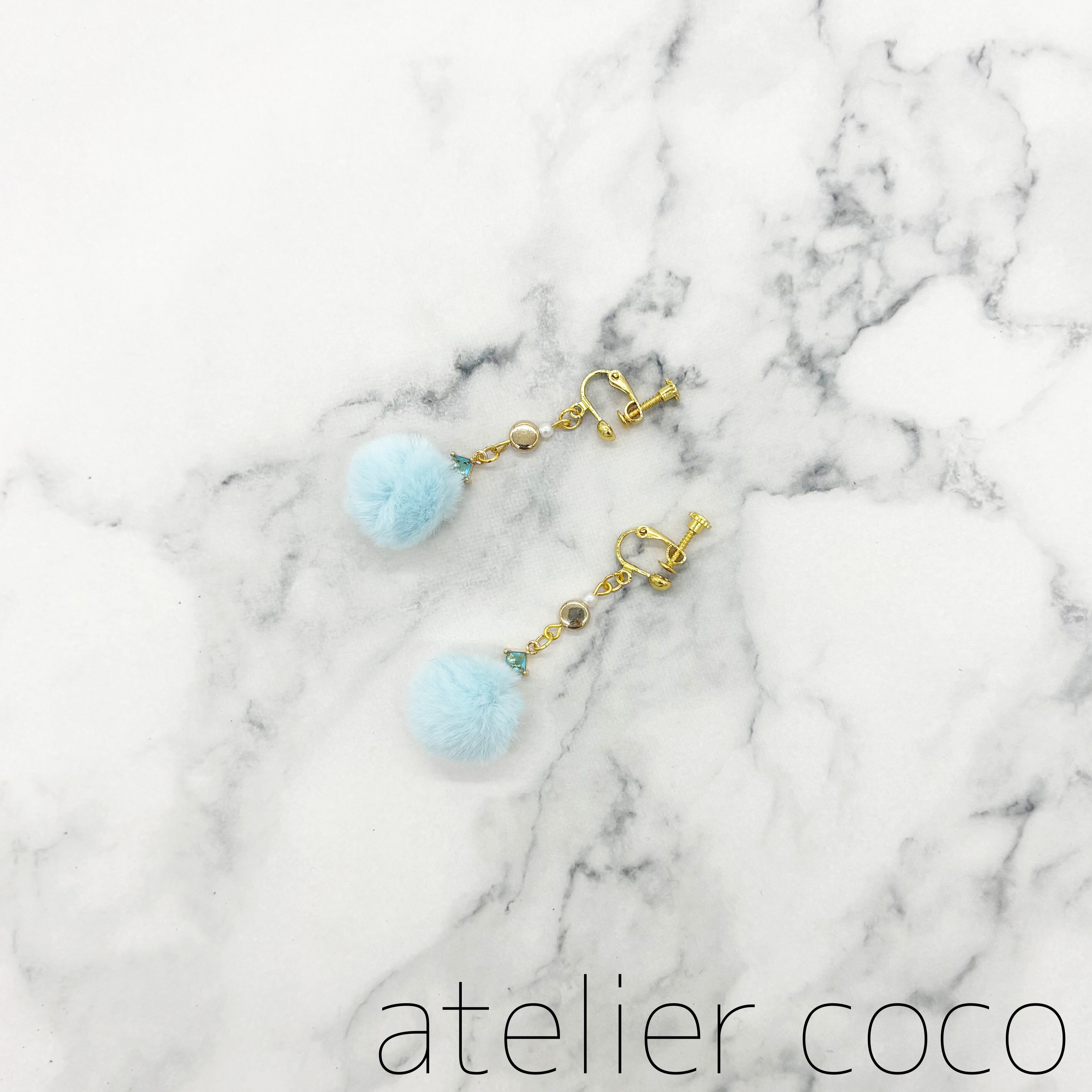 淡いパステルカラーのぽんぽんがとても可愛らしいイヤリングに仕上がりました。