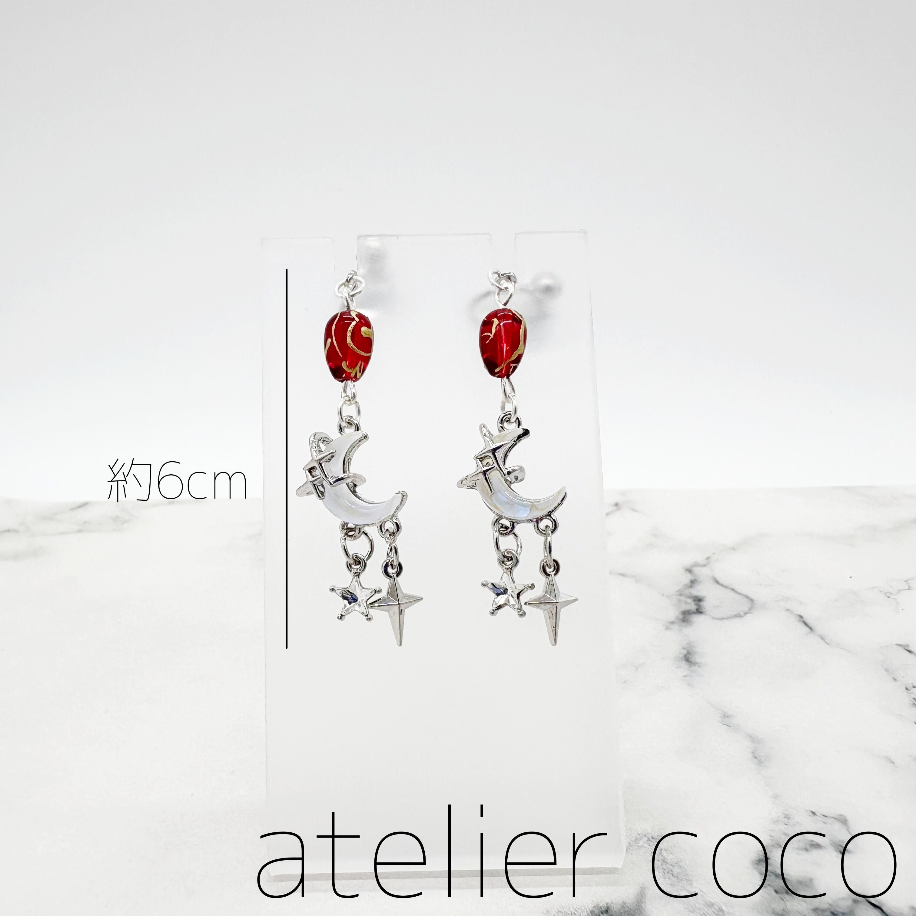 【サージカルステンレス】ムーンモチーフ ロング イヤリング【2025年新作】
