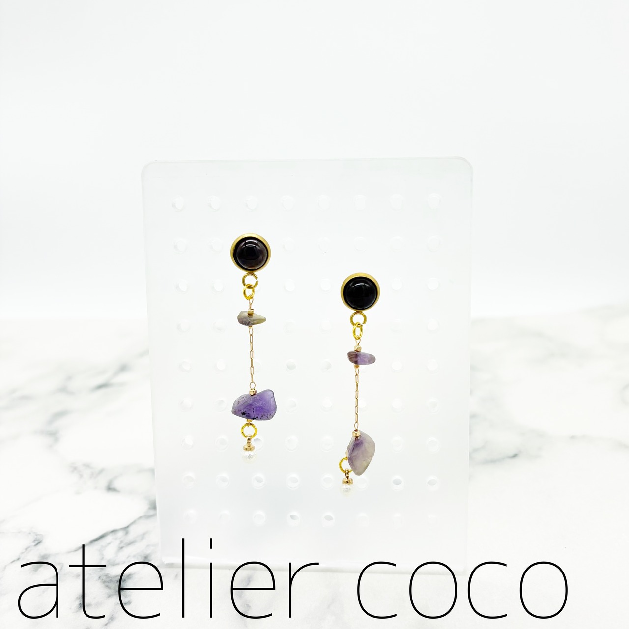 天然石 アメジスト ロング スタッドピアス(キャッチ式ピアス) パープル